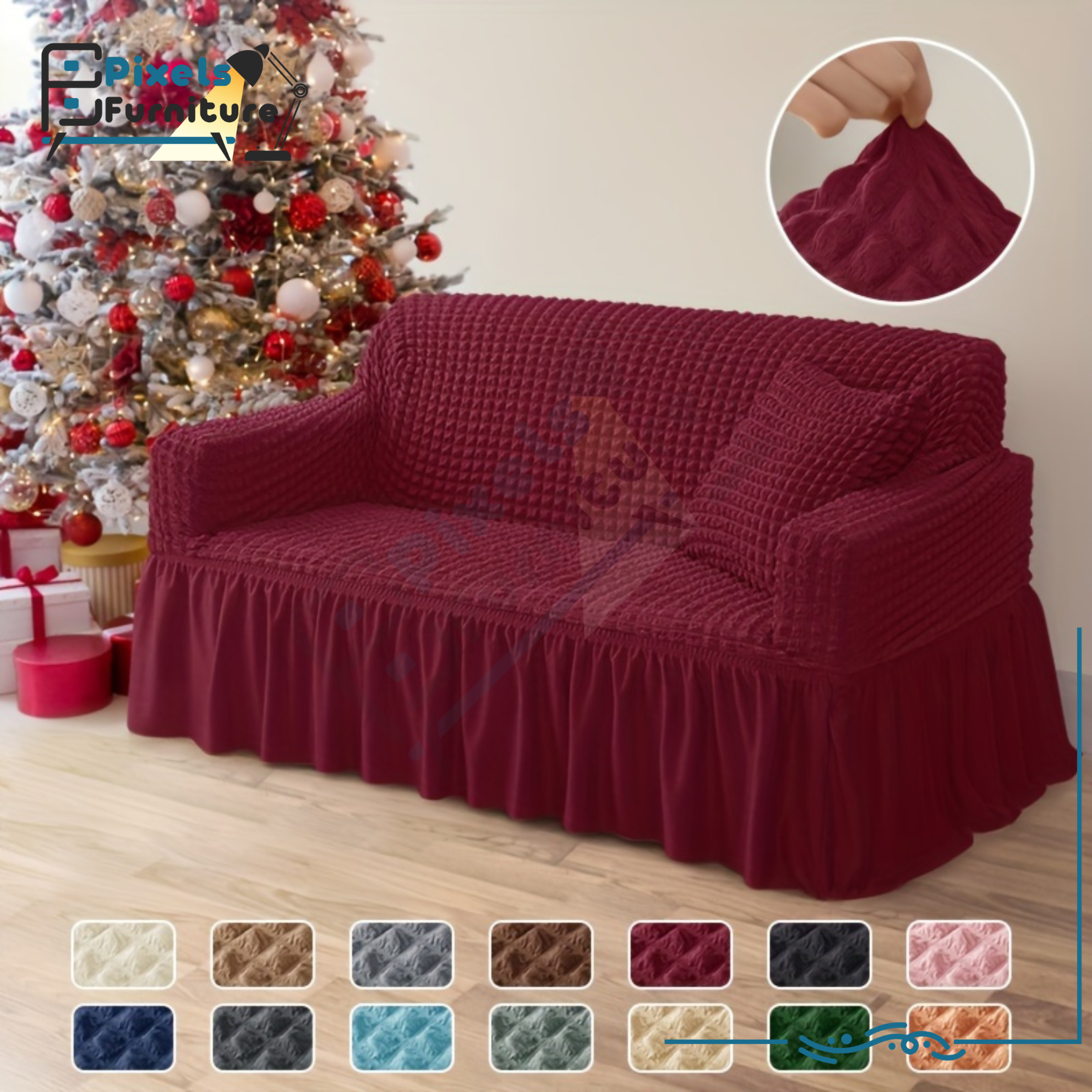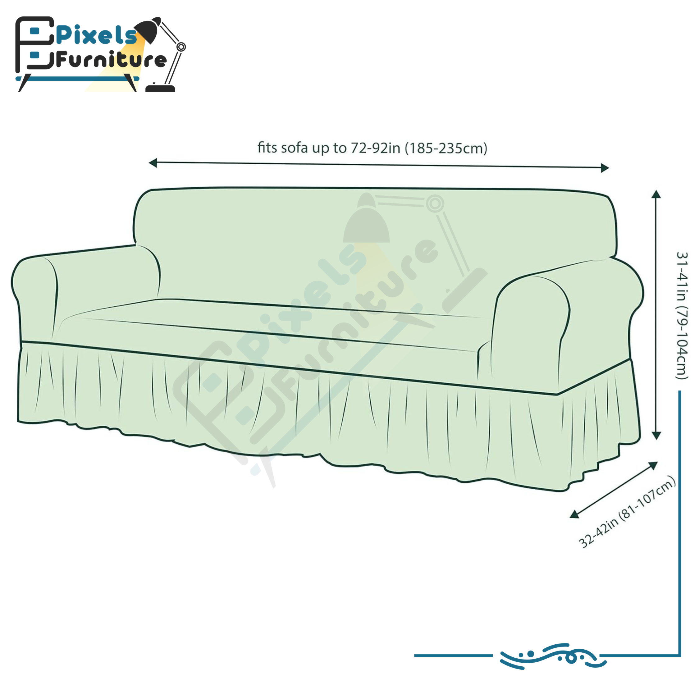 - تلبيسة وغطاء كنبة مكون من قطعة واحدة ليناسب كنب 3 أشخاص بحيث يأتي بستارة من الأمام ليعطي تصميم أنيق وليمنع الأوساخ تحت الأريكة.